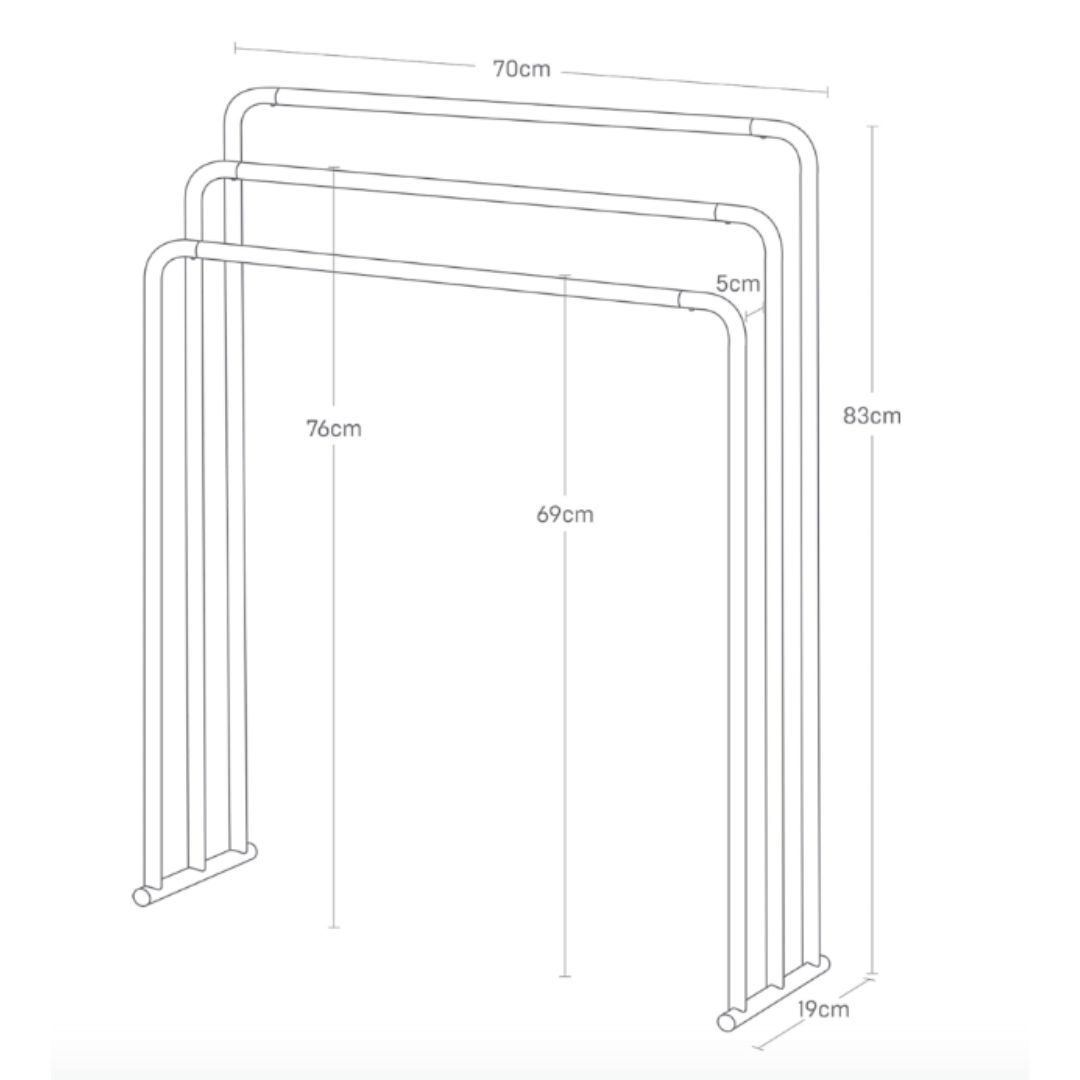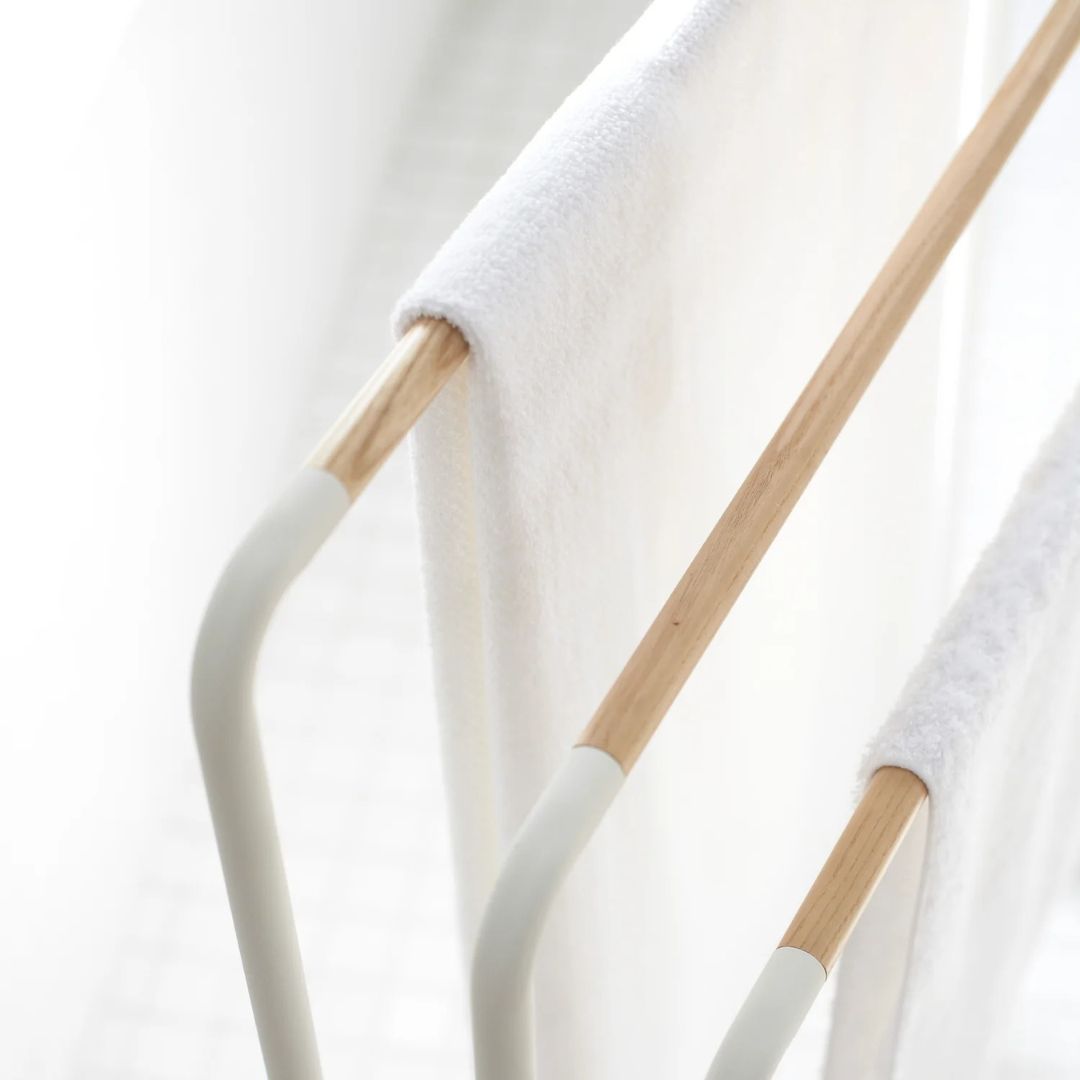 Ideale per bagno, ma perfetto anche in camera o in zona lavanderia curata, offre spazio per più asciugamani mantenendo ordine e leggerezza visiva. Un oggetto dal design pulito, coerente con uno stile nordico e raffinato.