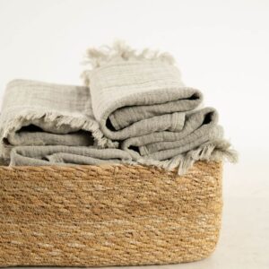 Puoi abbinarlo ad altri tessili neutri per un effetto armonioso oppure usalo come dettaglio decorativo su mensole e lavabi.
