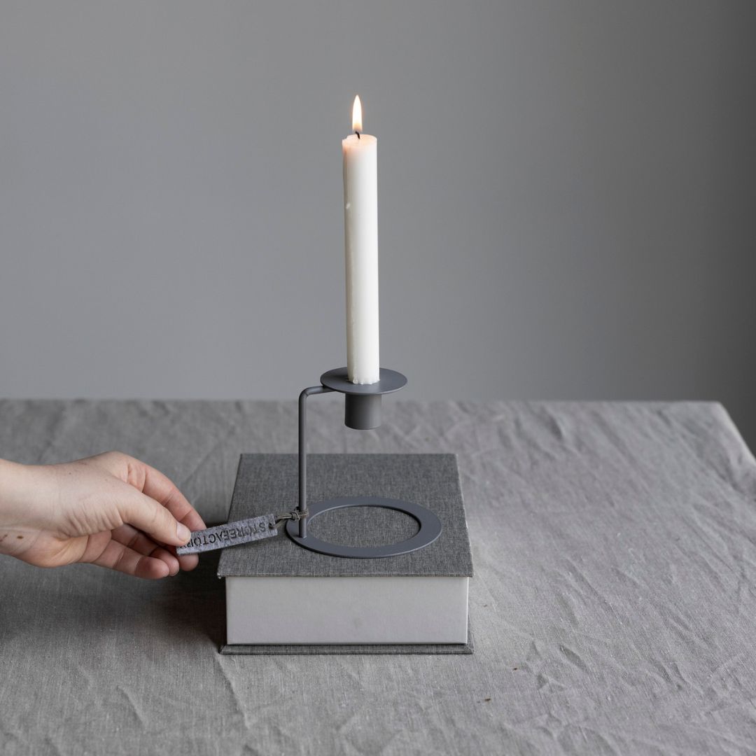 Il Candeliere da tavolo in metallo grigio opaco Ø12 di Storefactory è un oggetto semplice e raffinato, che porta il fascino del design scandinavo minimalista in chiave rètro. Il manico lo rende pratico da spostare e richiama i candelieri tradizionali, con un tocco contemporaneo.