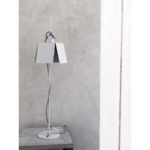 Il cavo tessile di colore grigio è perfetto attorcigliato lungo lo stelo della lampada. Perfetta come lampada da lettura, come luce d'ambiente e d'atmosfera, sulla scrivania o su un mobile.