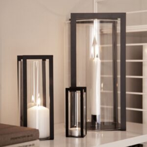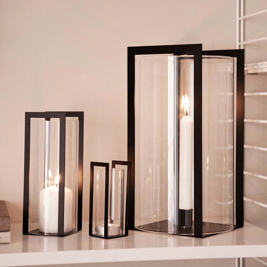 Questa meravigliosa lanterna di design svedese nera di Storefactory è in metallo verniciato nero opaco con cilindro di vetro molto resistente.