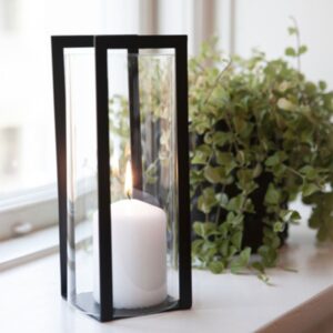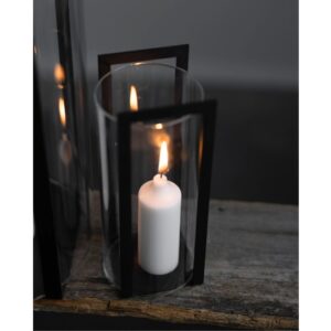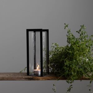 Questa meravigliosa lanterna di design svedese nera di Storefactory è in metallo verniciato nero opaco con cilindro di vetro molto resistente.