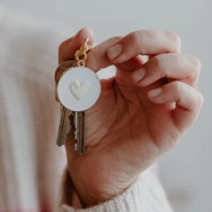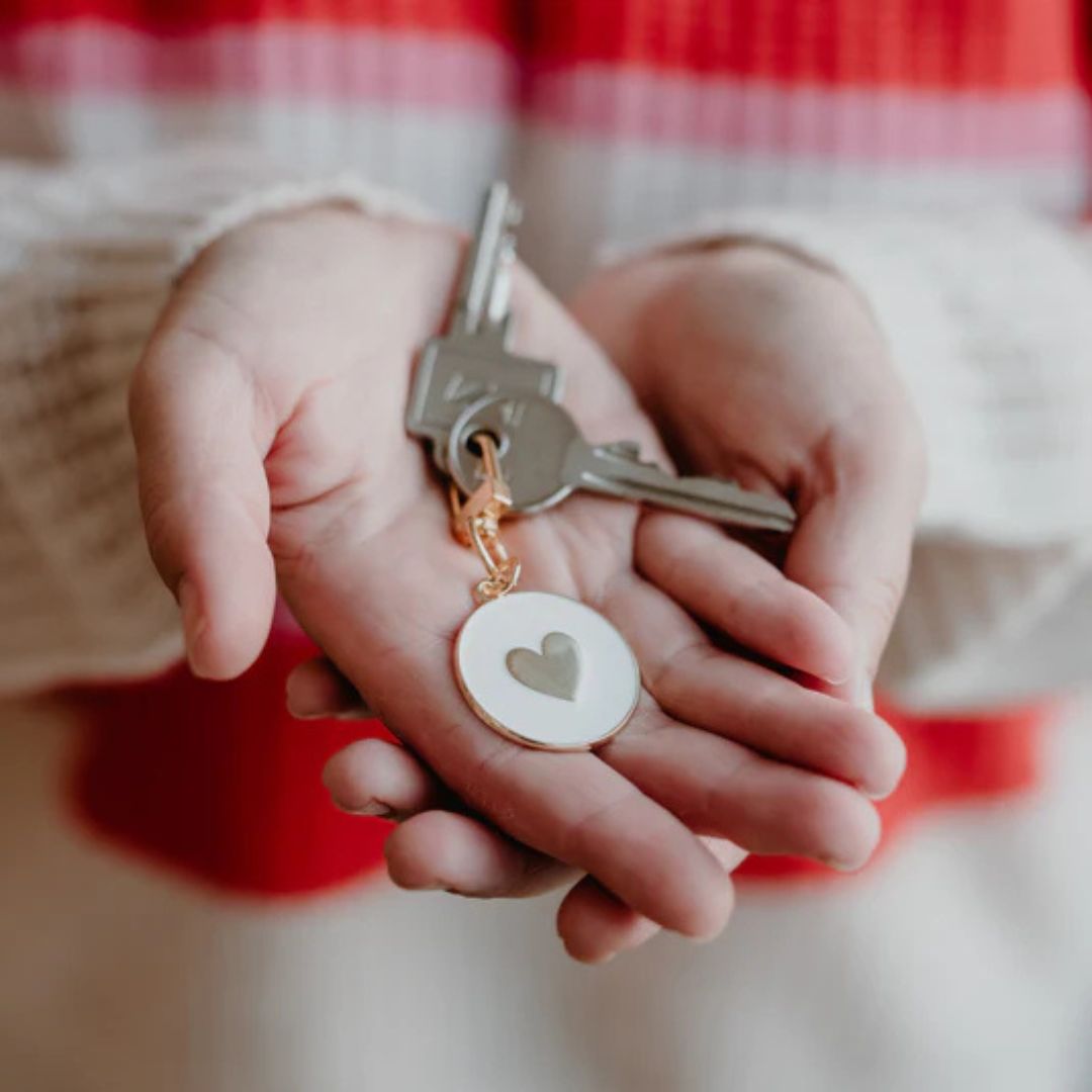 Questo portachiavi in metallo smaltato con motivo a cuore del brand Eulenschnitt è un piccolo gesto d'amore per te o per la persona a cui vuoi bene. Ogni portachiavi ha una forma sottile a cuore e un design leggero che non appesantisce il mazzo di chiavi. Perfetto per organizzare, decorare e avere sempre un dettaglio dolce con te.