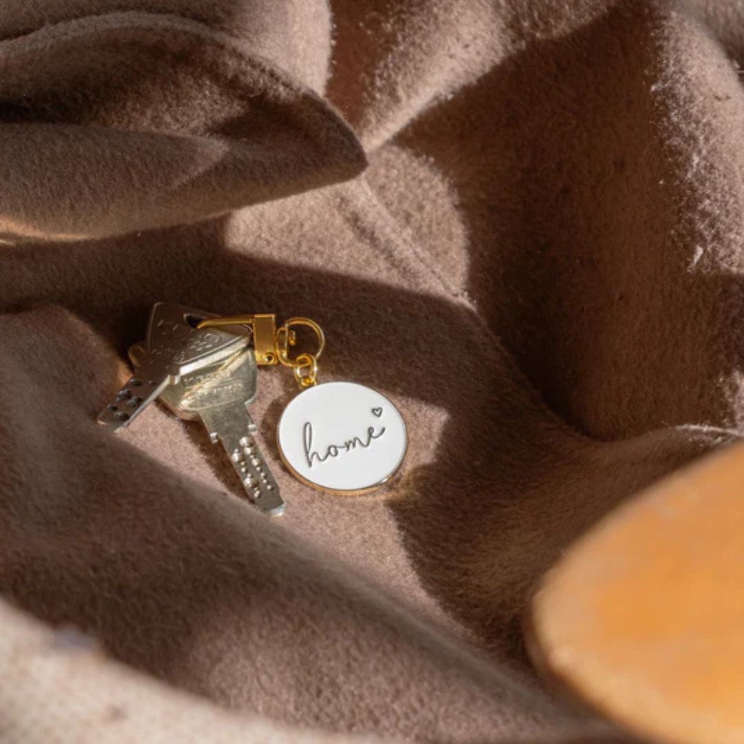 Questo portachiavi in metallo smaltato con motivo "Home" del brand Eulenschnitt è un oggetto utile e affettuoso: il design minimale e lo smalto leggero rendono ogni portachiavi una piccola dichiarazione di affetto per il proprio spazio. Perfetti per chi ama avere un simbolo "Casa" sempre con sé.