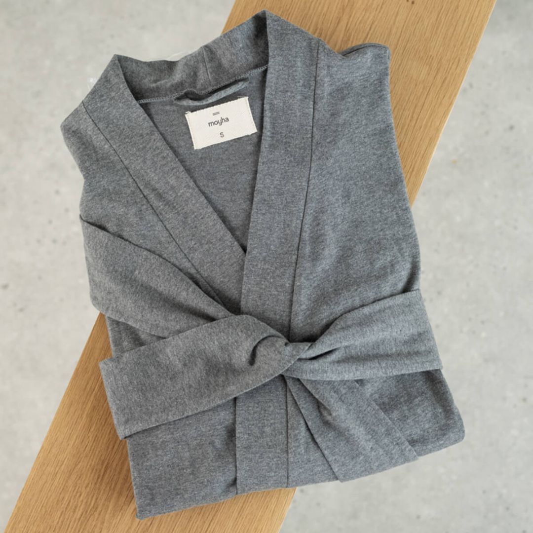 Questa vestaglia KIMONO grigia di Moyha è realizzata in felpa di cotone. Se ami un abbigliamento da casa confortevole e pratico questa vestaglia è perfetta.