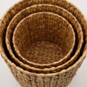 Il giacinto d'acqua dolce è una pianta acquatica a crescita rapida originaria del Sud America, in natura è una pianta apprezzata per il profumo dei suoi fiori e per la capacità di purificare l'acqua. L'utilizzare questa pianta per la realizzazione di cesti è una scelta sostenibile e dalla resa estetica notevole.