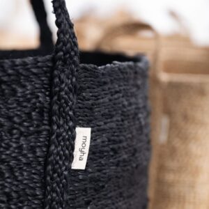 Dona un tocco di calore e stile alla tua casa con questo cesto in juta nera con base rotonda di Moyha. Un accessorio ideale come coprivaso per piante, portaoggetti per il bagno, oppure per organizzare plaid e coperte in soggiorno.