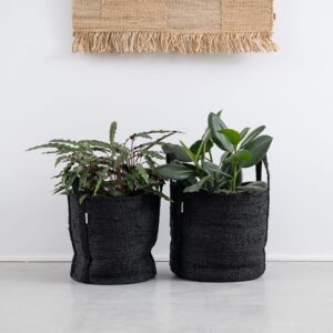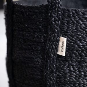 Dai un tocco di design nordico ai tuoi ambienti con questo cesto in juta nera con base rotonda di Moyha. Il suo design artigianale lo rende perfetto come organizer decorativo per il soggiorno, la camera da letto o l'ingresso.