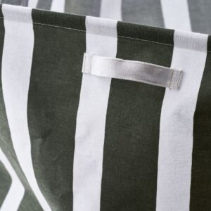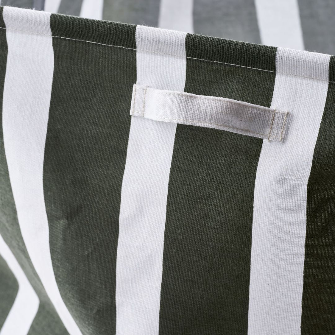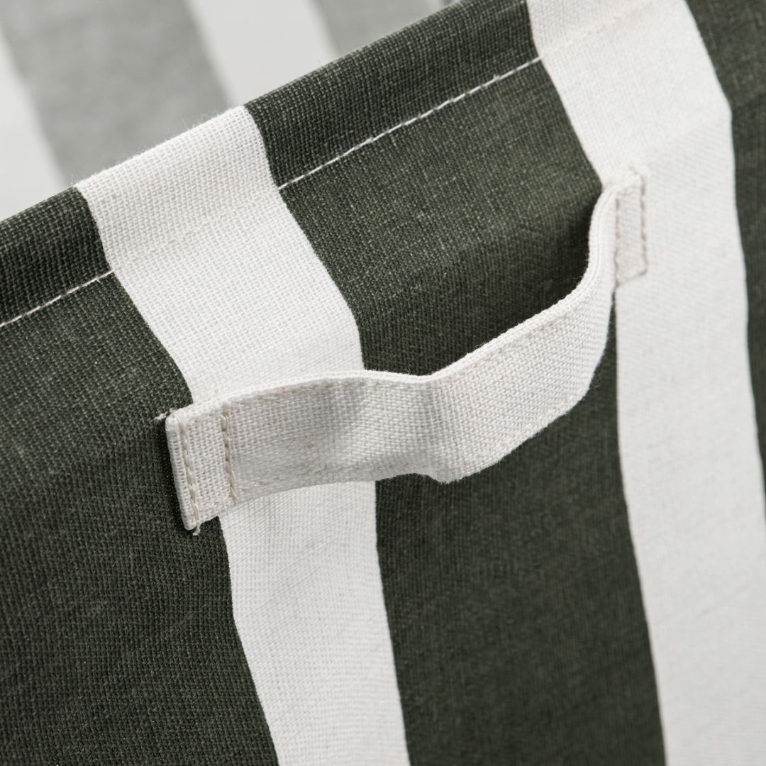 Aggiungi una nota di eleganza scandinava al tuo spazio con questo cesto portatutto dal design danese, caratterizzato da strisce in verde foresta scuro. Robusto ma leggero, il tessuto consente al cesto di mantenere la forma anche vuoto, mentre la possibilità di piegarlo facilmente lo rende ideale per chi cerca soluzioni salvaspazio. Con dimensioni di 40x40 cm e un’altezza di 50 cm, offre ampia capacità per riporre biancheria, giocattoli o qualsiasi altro oggetto domestico.