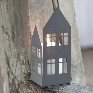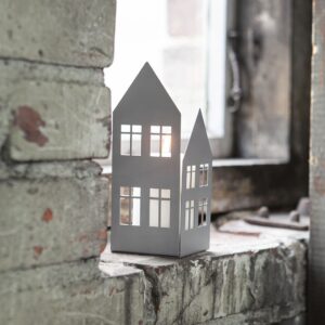 Può avere molteplici funzioni questo portacandele fermalibri in metallo laccato grigio di Storefactory. Su una mensola o un mobile con una candela posizionata sul retro ti donerà un elegante complemento luminoso. La sua silhouette si presta altrettanto bene come fermalibri sullo scaffale.