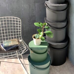 Il secchio di design Hachiman Bucket Omnioutil è stato lanciato nel 1993 e Hachiman® è un’azienda giapponese con sede nella Prefettura di Gifu, vicino a Nagoya. I loro prodotti sono realizzati in polipropilene di alta qualità: