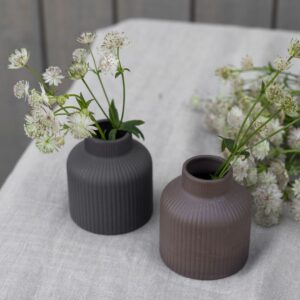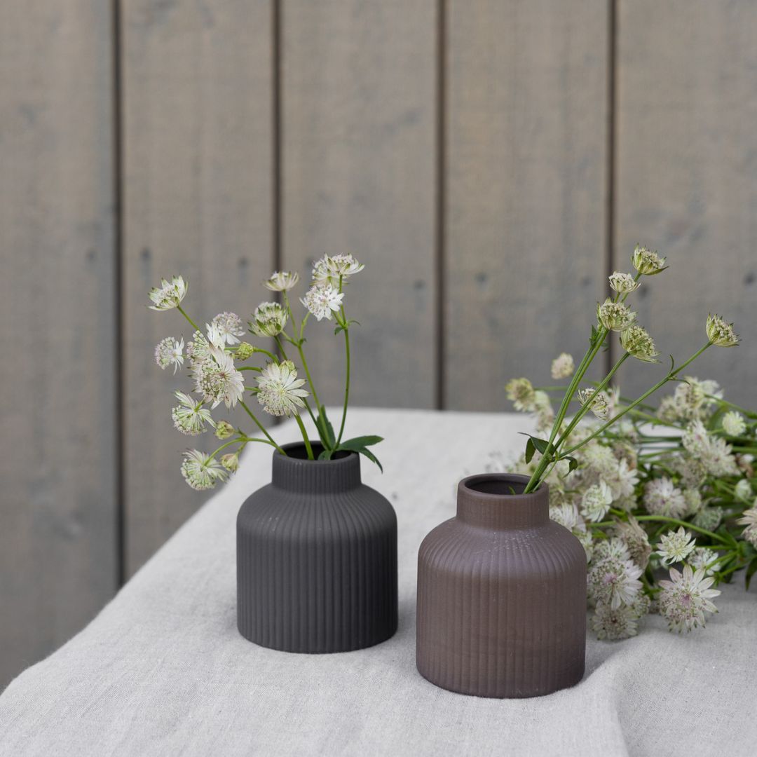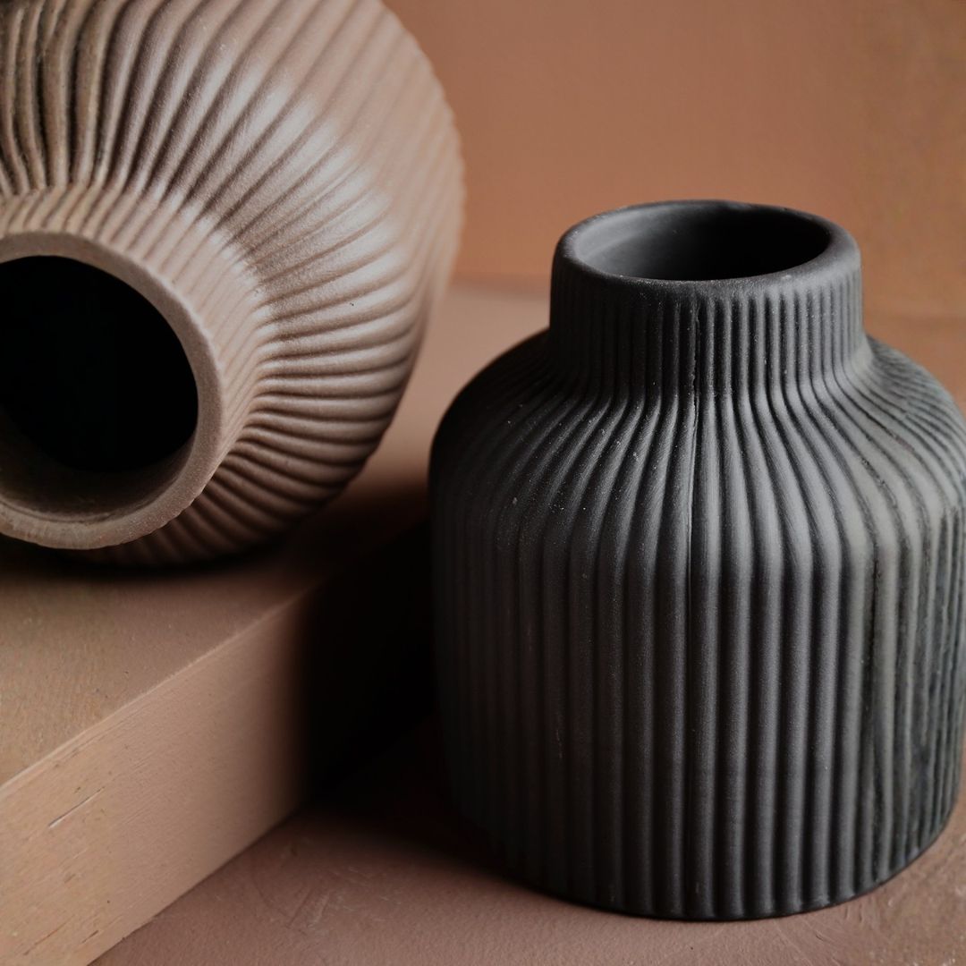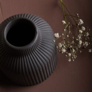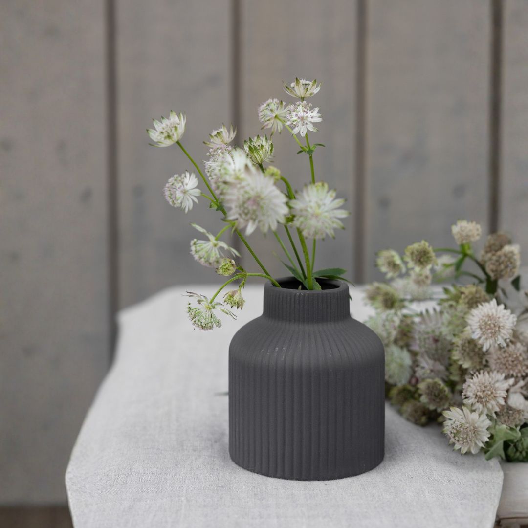 Meraviglioso vaso in ceramica opaca antracite di Storefactory. La finitura opaca è in perfetto stile nordico, essenziale e raffinata allo stesso tempo.