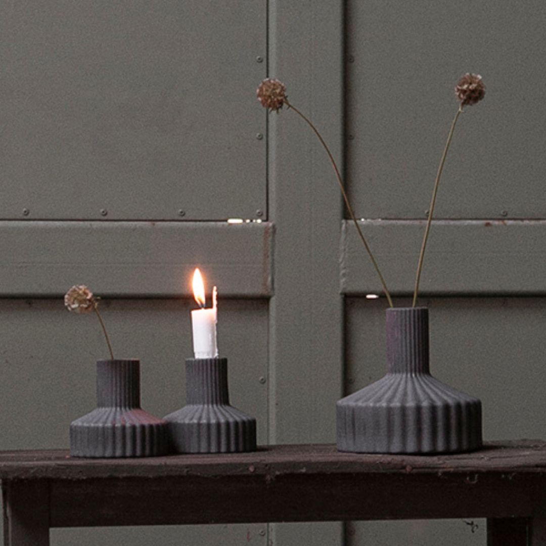 Meraviglioso vaso in ceramica opaca antracite di Storefactory. La finitura opaca è in perfetto stile nordico, essenziale e raffinata allo stesso tempo.
