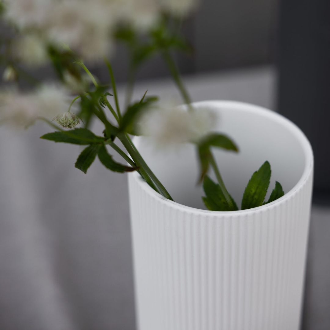 Meraviglioso vaso in ceramica opaca bianco di Storefactory. La finitura opaca è in perfetto stile nordico, essenziale e raffinata allo stesso tempo.