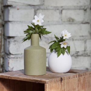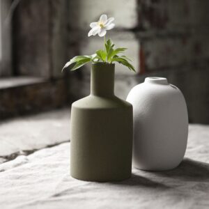 Meraviglioso vaso in ceramica opaca verde oliva di Storefactory. La finitura opaca è in perfetto stile nordico, essenziale e raffinato allo stesso tempo.