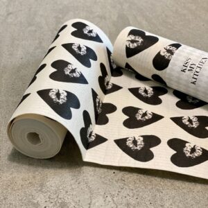 Questi moderni panni spugna ecologici in rotolo dal design a cuori di Kiss My Kitchen sono 12 fogli di spugna riutilizzabile. Anche l'angolo cucina necessità di personalità!