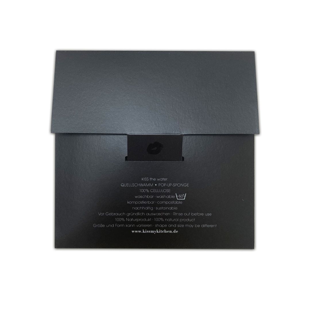 Si presenta in un’elegante busta nera all’interno della quale si trova la spugna pop-up ecologica con design "nero zebrato" di Kiss My Kitchen questo accessorio pulizia davvero raffinato ed accattivante!