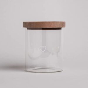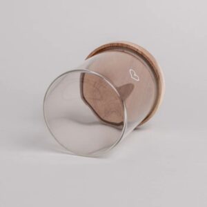 Cura e manutenzione: il vetro può essere lavato in lavastoviglie, mentre il coperchio in legno va pulito con un panno umido e asciugato immediatamente. Per una maggiore protezione, puoi trattare il legno con un pò di olio a tua scelta, senza alterarne il carattere naturale.