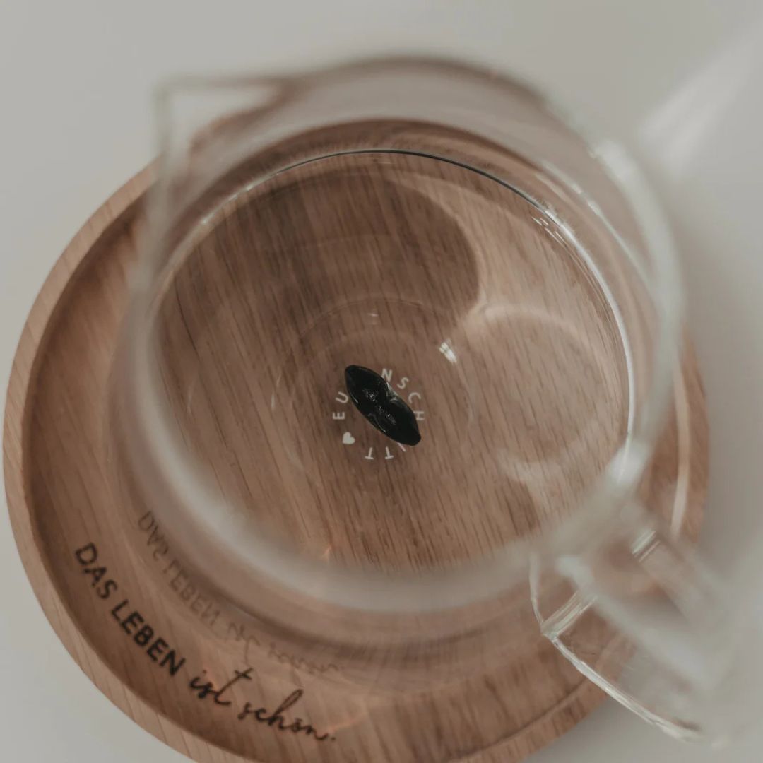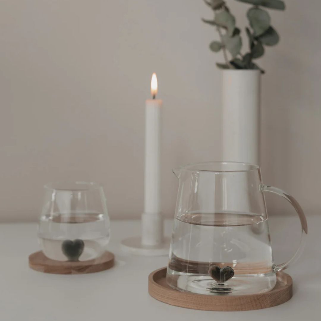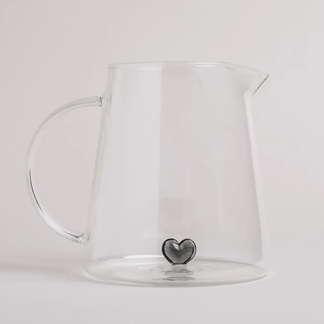Questa caraffa in vetro borosilicato con cuore nero sul fondo del brand Eulenschnitt unisce eleganza e funzionalità in un design unico. Il vetro borosilicato è un materiale durevole, è perfetta per servire acqua, succhi o bevande fredde, trasformando ogni momento a tavola in un gesto raffinato e romantico.