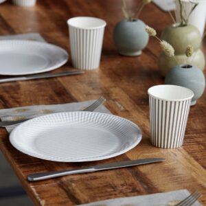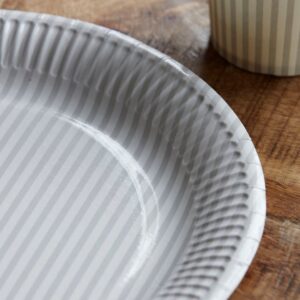 Questi piatti di carta dal design rigato grigio chiaro di House Doctor sono in confezione da 12 pz. Per le tue serate informali all'aperto o per una festa particolare con amici e famigliari, quando scegli la comodità del monouso ma non vuoi rinunciare all'eleganza di un piatto particolarmente raffinato ed esteticamente piacevole. L'obiettivo del design rigato infatti è proprio quello di rendere i piatti di carta più attraenti e distintivi, aggiungendo un tocco di stile alla tua tavola.