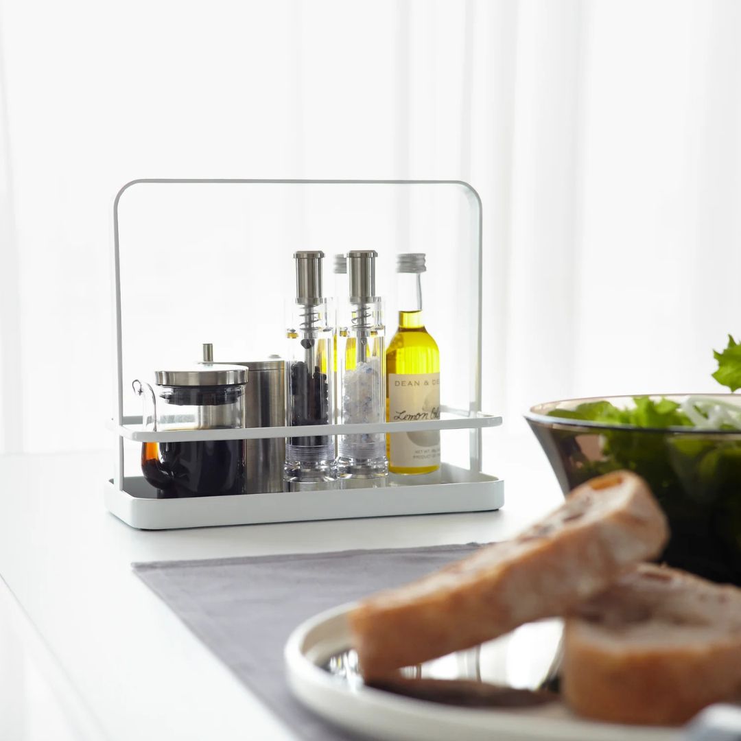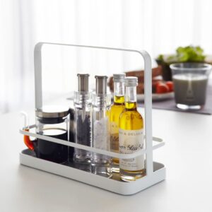 Il Portacondimenti del brand giapponese Yamazaki è la soluzione perfetta per organizzare spezie, oli e salse con eleganza minimal. Linee pulite, struttura solida in acciaio e una pratica maniglia lo rendono ideale per portare tutto in tavola con un solo gesto.