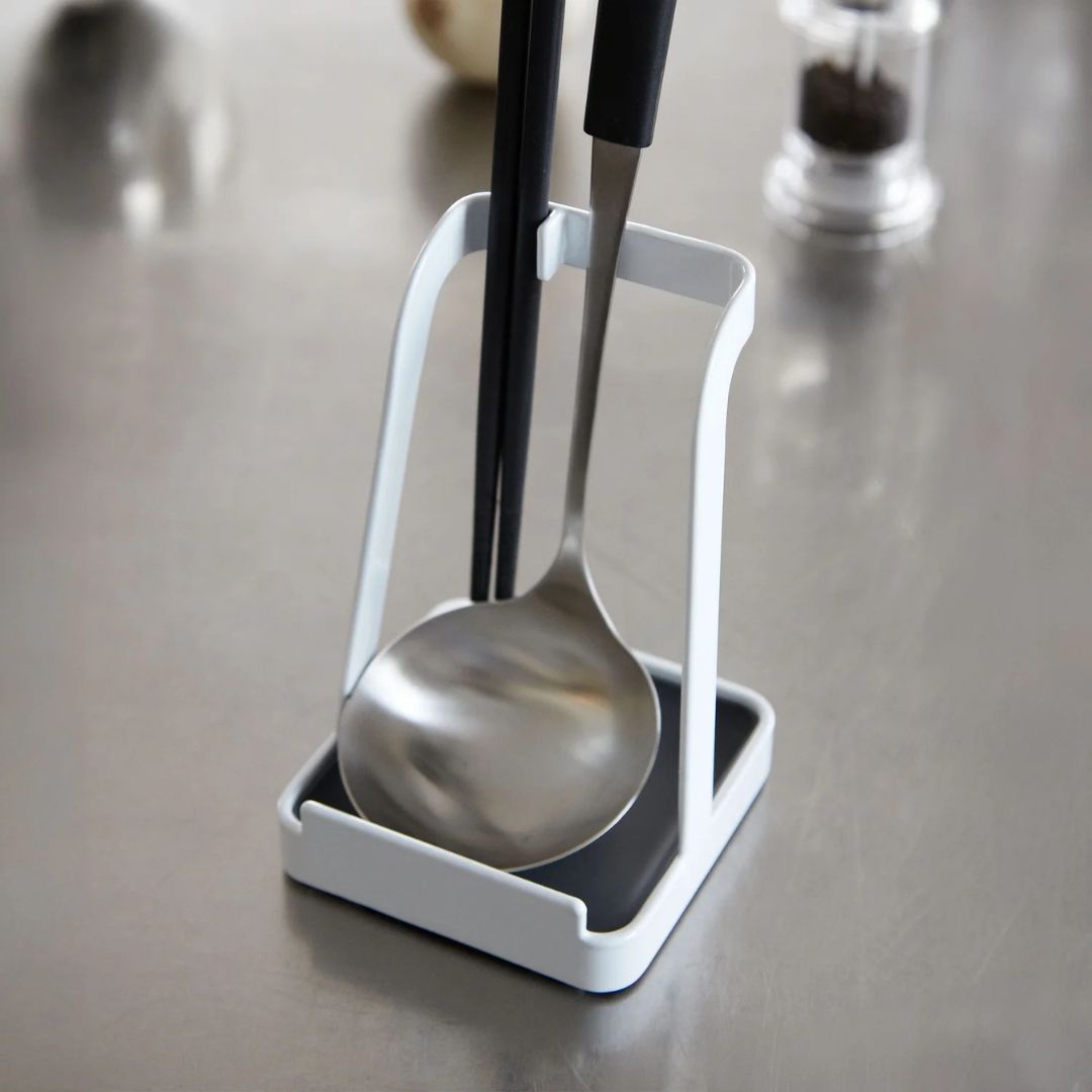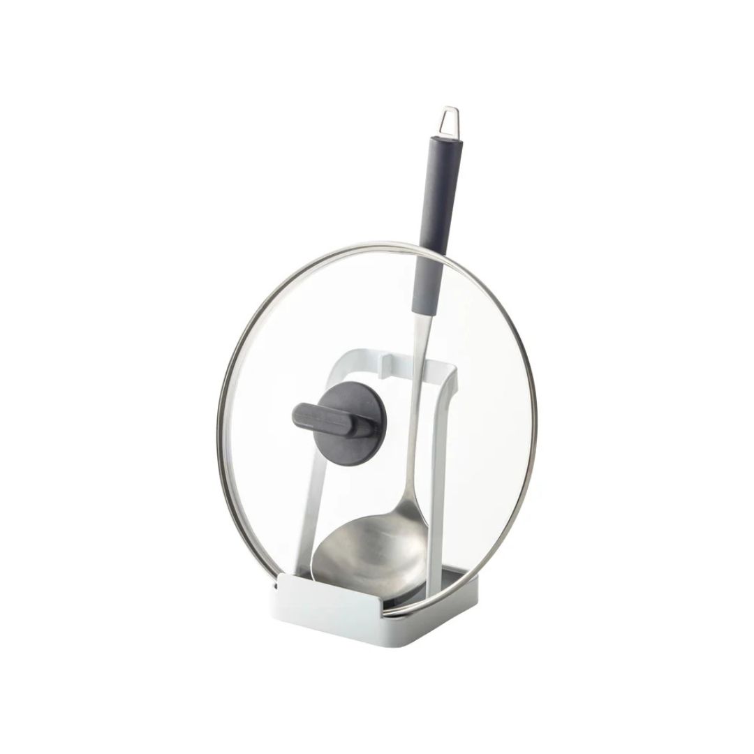 Il Supporto mestoli e coperchi del brand giapponese Yamazaki è l'alleato perfetto per mantenere il piano cucina pulito e organizzato mentre cucini. Progettato per sostenere mestoli, cucchiai e coperchi, evita sgocciolamenti e macchie grazie alla pratica vaschetta raccogli-gocce rimovibile.