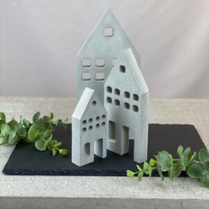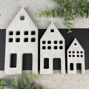 La casa decorativa in cemento di Hygge Hem è un vero e proprio complemento d'arredo e un'aggiunta elegante e moderna alla tua casa. Il cemento è un materiale notoriamente molto utilizzato nell'arredamento e soprattutto nell'edilizia in stile moderno, perchè quindi non utilizzarlo anche per piccole creazioni decorative come queste case in cemento. È fatta a mano e ha una finitura materica e opaca, tipica del cemento grezzo non trattato in superficie.