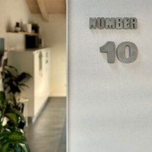 Libero sfogo alla fantasia per l'utilizzo dei numeri grandi in cemento di Hygge Hem. Un complemento d'arredo e decorazione moderna fatto a mano dalla finitura materica e opaca, tipica del cemento grezzo non trattato in superficie. Usali per comporre il tuo numero civico, da soli o abbinati alle lettere in cemento dell'alfabeto grande o medio per personalizzare al massimo la parete esterna o il giroscala della tua casa.