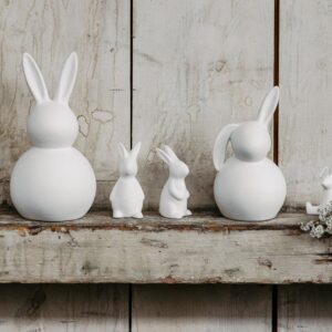 Posiziona il coniglietto sul tavolo, sul davanzale o al centro della tua decorazione fai-da-te. Abbinalo ad altri accessori, anche di materiale diverso, in metallo, in cemento o in mezzo a del verde.