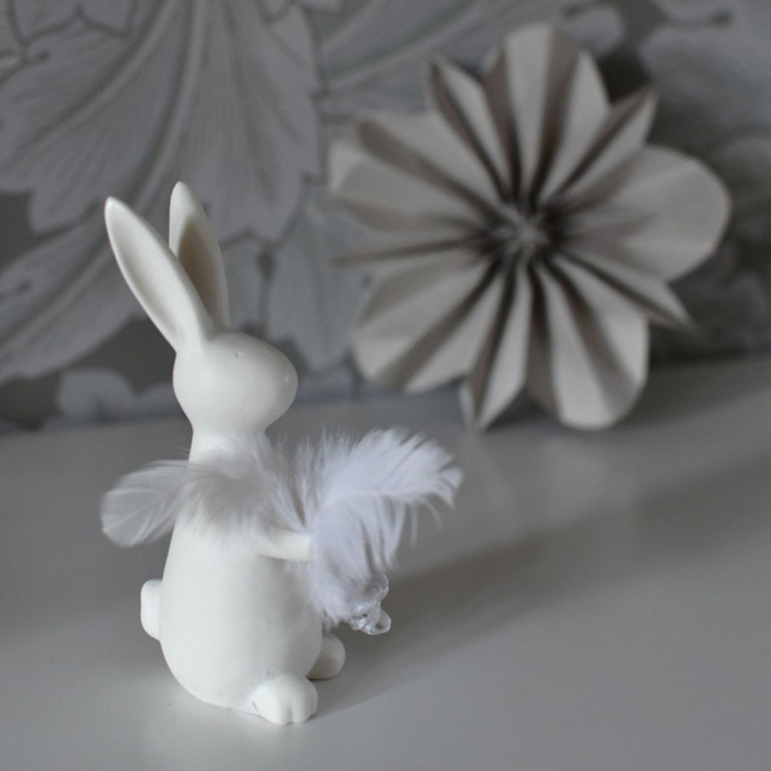 Posiziona il coniglietto sul tavolo, sul davanzale o al centro della tua decorazione fai-da-te. Abbinalo ad altri accessori, anche di materiale diverso, in metallo, in cemento o in mezzo a del verde.