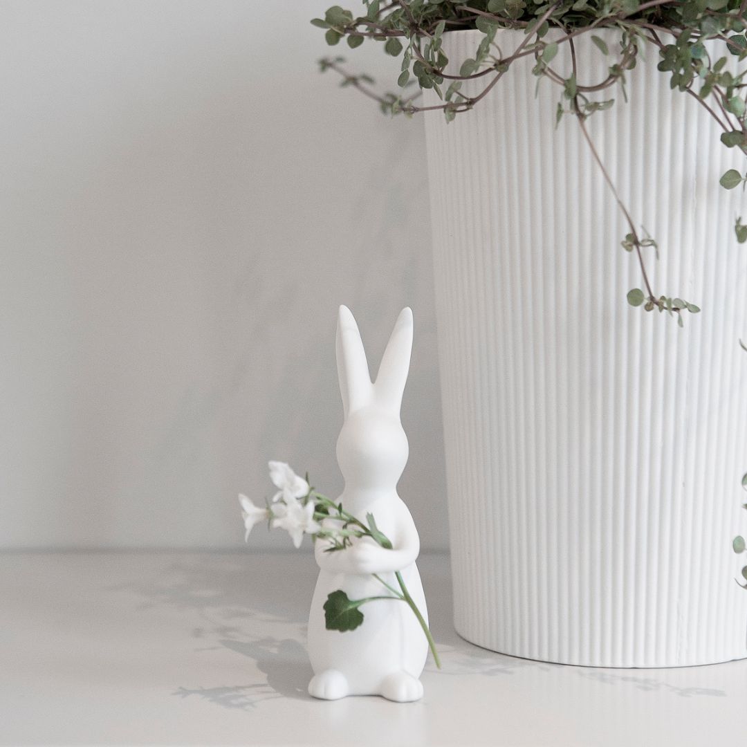 Questo coniglietto pasquale in ceramica bianca opaca di Storefactory è una simpatica e divertente decorazione, semplice ma raffinata.