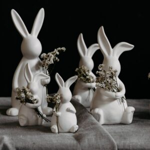 Posiziona il coniglietto sul tavolo, sul davanzale o al centro della tua decorazione fai-da-te. Abbinalo ad altri accessori, anche di materiale diverso, in metallo, in cemento o in mezzo a del verde.