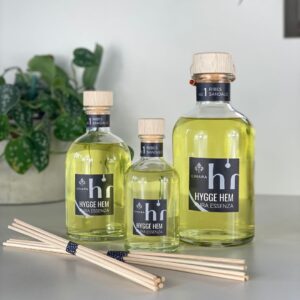 La linea di fragranze d'ambiente con bastoncini PURA ESSENZA di Hygge Hem nasce dalla passione autentica di maestri artigiani profumieri toscani. Ogni fragranza è realizzata a mano con una elevata concentrazione di oli essenziali, garantendo prodotti privi di OGM e derivati animali. Per la base viente utilizzato bio-alcol ottenuto dalla lavorazione della barbabietola da zucchero, e ogni fase, dall'imbottigliamento all'etichettatura, fino alla finitura con cavi di rame per i formati maggiori, è eseguita con cura artigianale per offrire un'esperienza sensoriale unica e di altissima qualità.